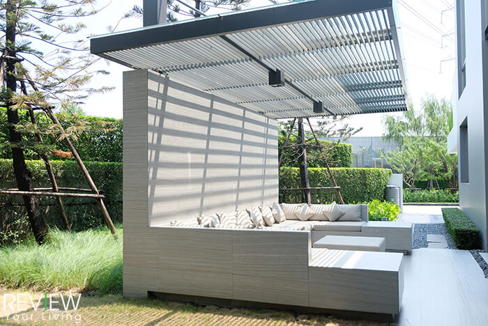 ติดกับมุมรับประทานอาหาร ทางโครงการทำ Pavillion เป็นโซฟากว้างรูปตัว U พร้อมหลังคากันแดดกันฝนมาให้ดูเป็นไอเดีย